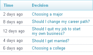 ¿Te gusta cuando alguien más hace el trabajo por ti? Simón proporciona una lista decisiones populares a la cual cada semana se añaden nuevas decisiones. Simón ha pensado en todo desde alternativas a consecuencias y factores potenciales. Usa la lista de Simón para asegurarte que tú también has pensado en todo. |