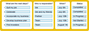 Simón no te abandona simplemente después de que tomes una decisión. Usa su plan de acción para organizar lo que tienes que hacer después de tomar cada decisión. Organiza los pasos a tomar, designa quien es responsable y asigna fechas para completar tareas. De esta manera te sentirás menos estresado – y mucho más cerca de completar satisfactoriamente tu decisión. |